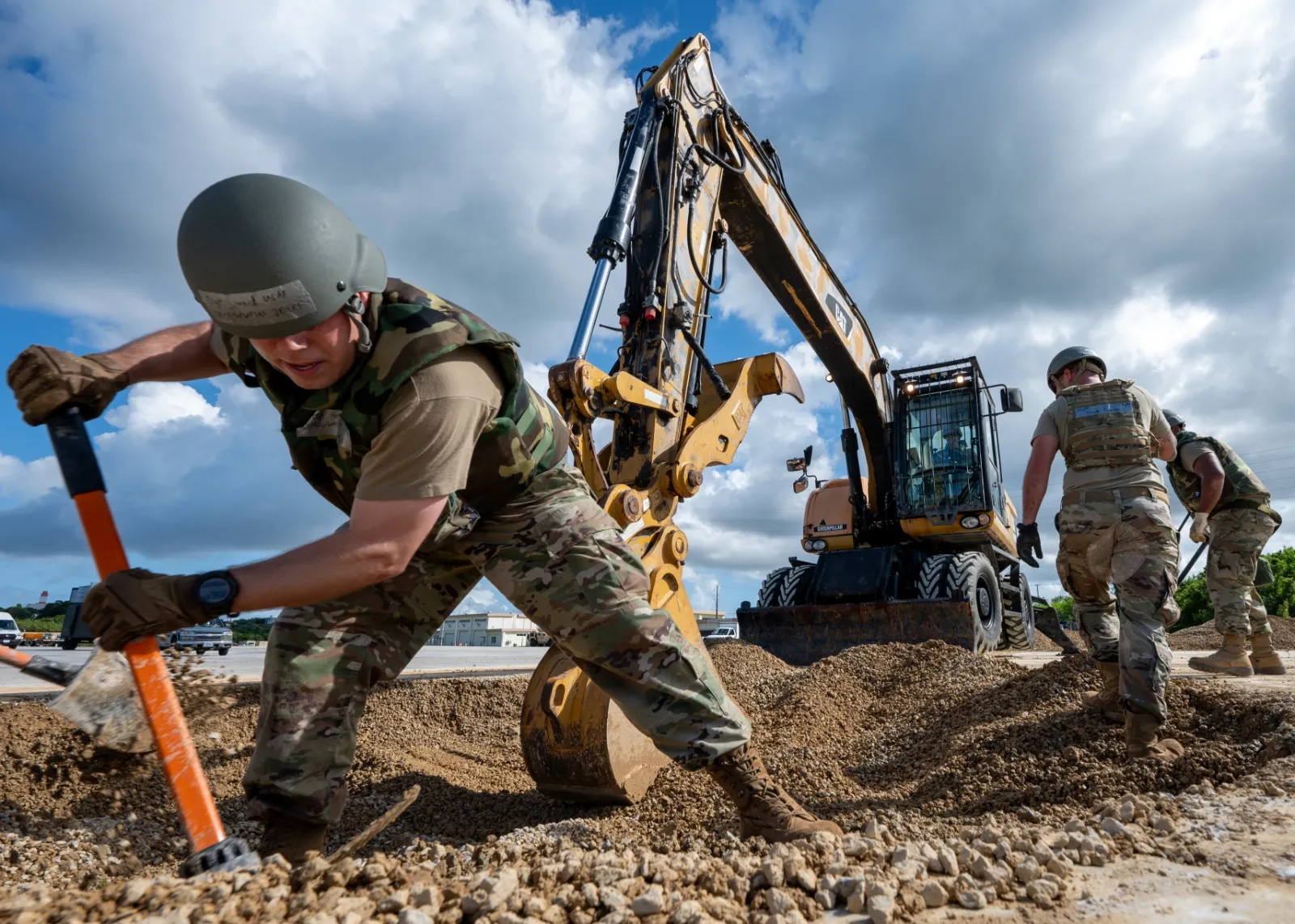 Air Force Senior Airman Seth Callahan, electrical power production journeyman of the 18th Civil Engineer Squadron, said: "The primary objective of [rapid airfield damage repair] operations is to get the airfield operational as quickly as possible so that we can get planes back in the sky. It's a very simple idea, but a lot goes into it."