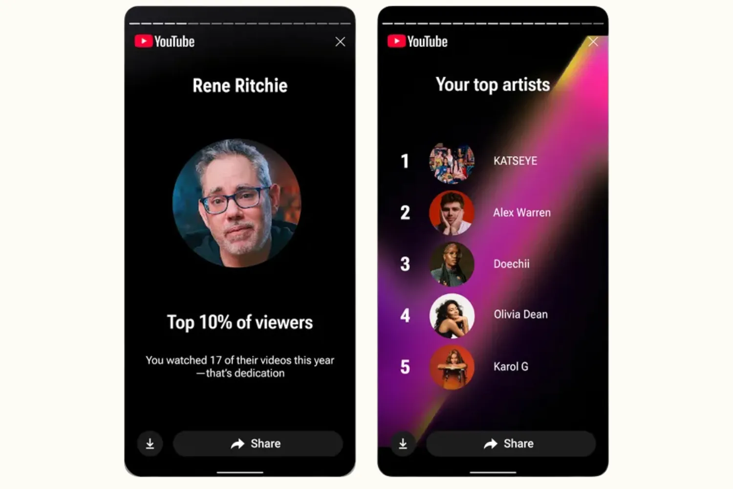 Once users have unlocked their YouTube Recap, the series of cards can be shared with friends and family across social media.