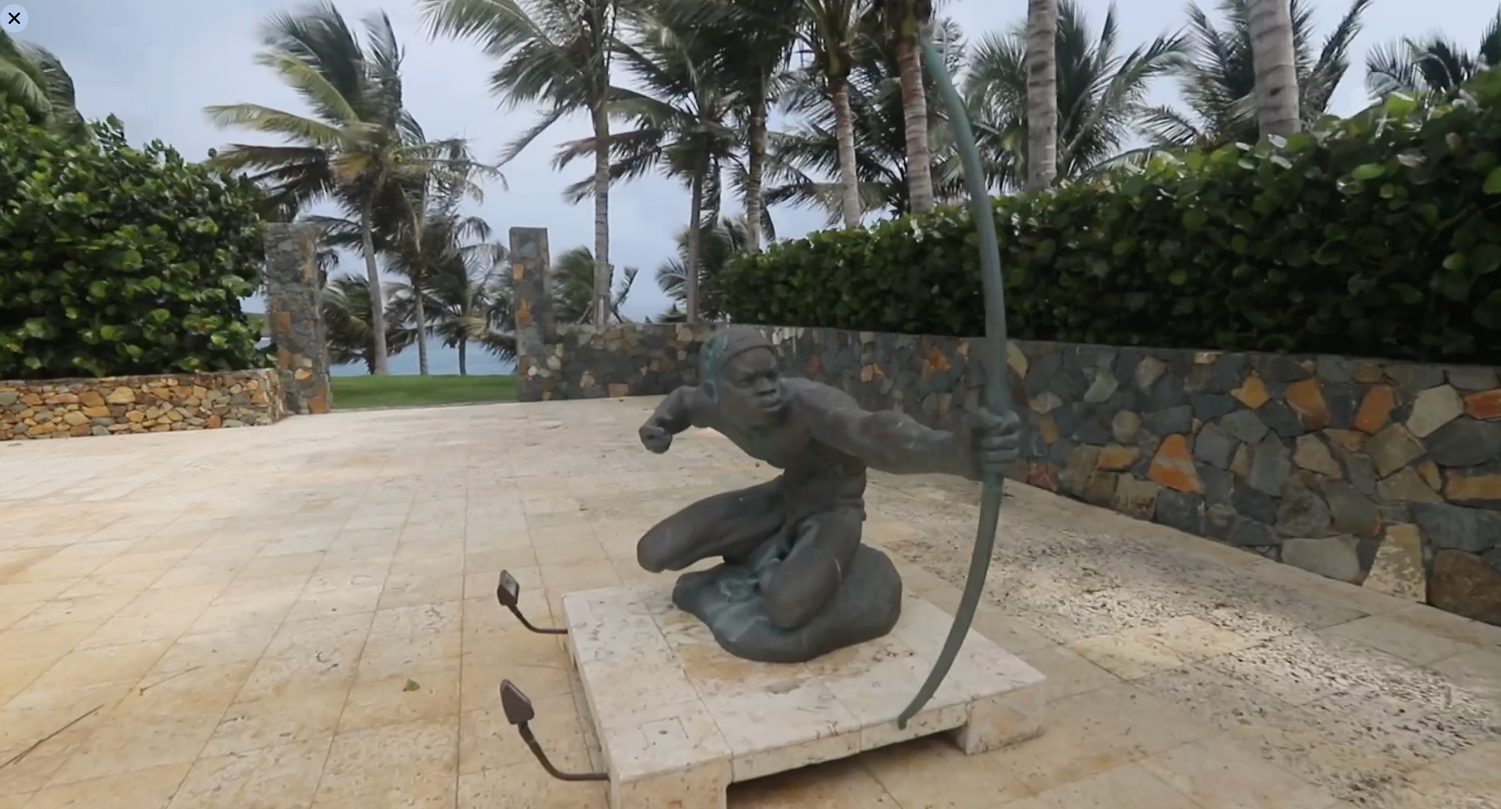 An unnamed sculpture is pictured near a swimming pool in one of the videos.